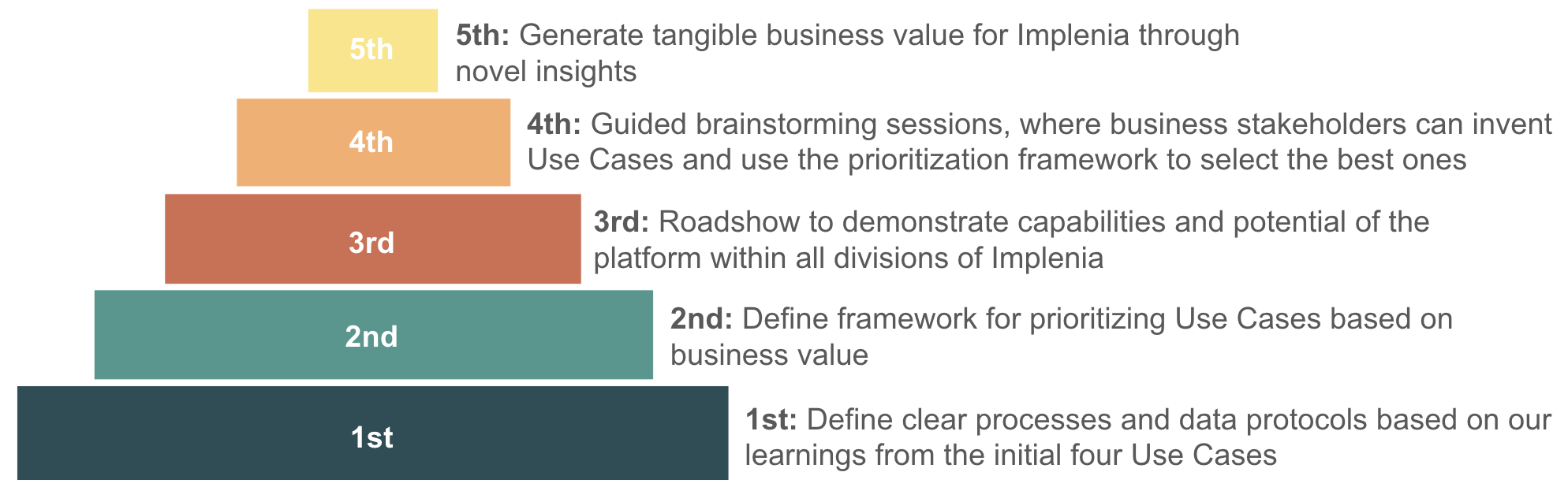 Together, as of today, we have identified 40 new, promising Use Cases across all business units at Implenia, of which 15 have been prioritized.